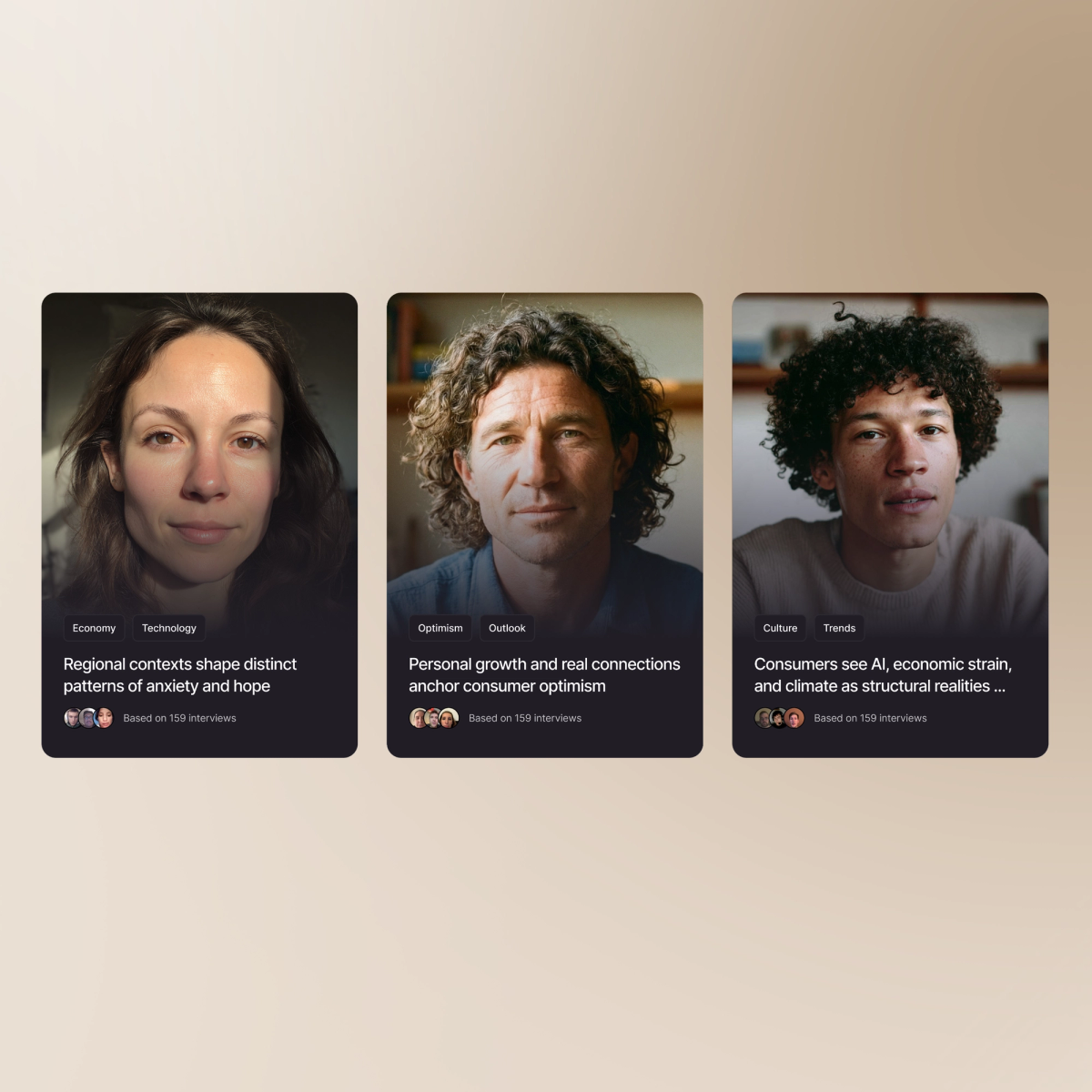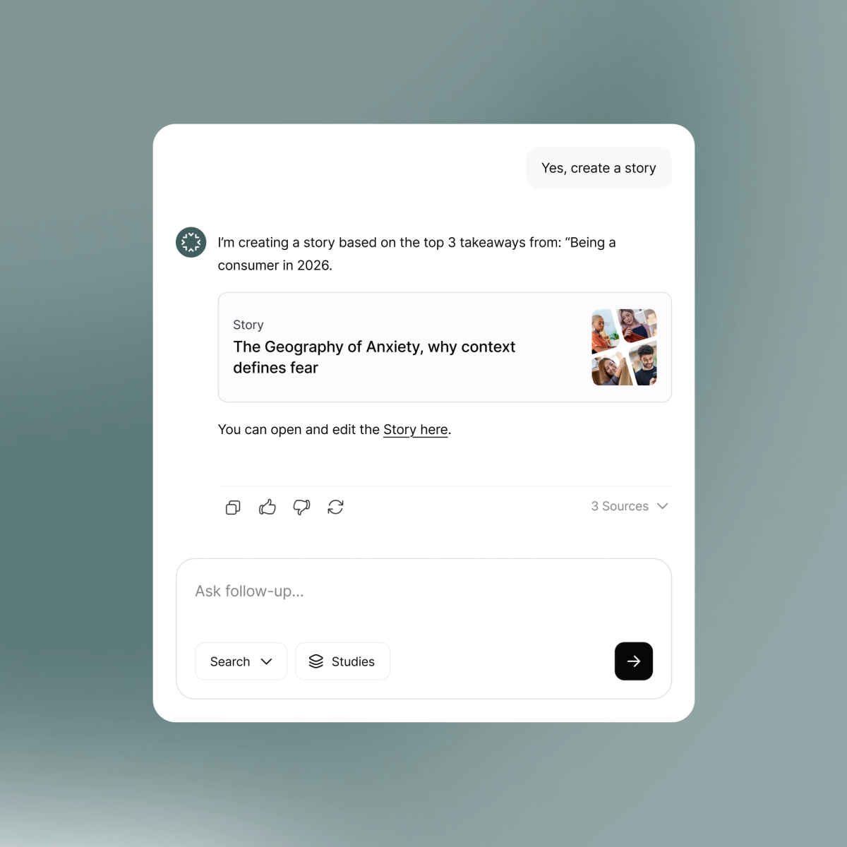 Bundle stories on thematic boards to display specific segments, trends, or market opportunities. Centralize your human understanding so it travels freely, aligns teams, and accelerates decisions.
